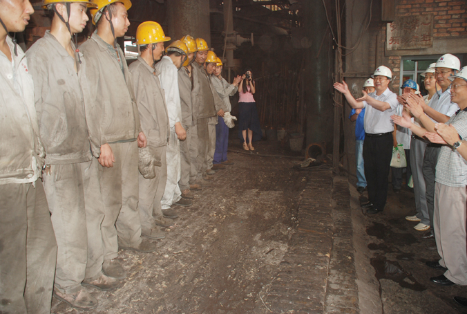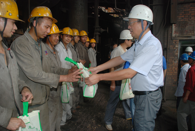 2013年7月12日上午,縣上領(lǐng)導宋興東、陳小康、趙文哲、陳明華、李鈞等帶領(lǐng)送清涼慰問組來公司對一線職工進行了慰問。上午十時,慰問小組來到了正在出鐵的二號高爐現(xiàn)場,為爐前工送上了綠豆、茶葉、白糖等防暑降溫用品,勉勵職工堅守崗位,戰(zhàn)勝酷暑,為確保生產(chǎn)順行做出貢獻。