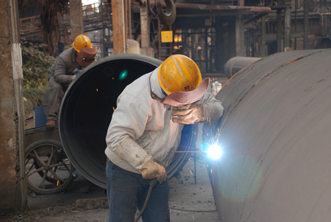 機(jī)修廠一車間為確保年修任務(wù)按時完成,加班加點制作年修用的備品備件,以保證年修工作順利進(jìn)行。圖為一車間員工在現(xiàn)場焊接高爐煤氣總管。