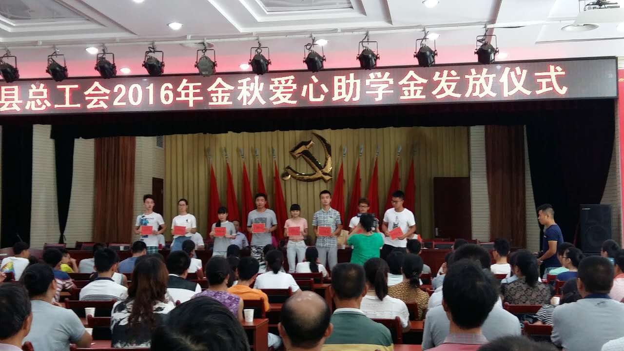 8月17日,在縣委一樓會(huì)務(wù)中心大廳舉行了勉縣總工會(huì)2016年金秋愛心助學(xué)金發(fā)放儀式。我公司28名職工子女受到救助。