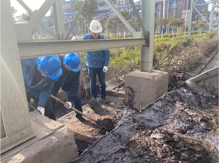 公司二號(hào)路是通往一線生產(chǎn)區(qū)域的主干道,也是職工上下班的必經(jīng)之路。機(jī)關(guān)黨支部組織全體黨員對(duì)路面和溝渠進(jìn)行清掃、清淤。大家分工明確,團(tuán)結(jié)協(xié)作,用鐵鍬將路面淤泥清理干凈,再用水對(duì)路面進(jìn)行沖洗。天氣雖然寒冷但是大家干勁十足,經(jīng)過(guò)5個(gè)多小時(shí)的努力,對(duì)二號(hào)路全長(zhǎng)350米水溝和路面進(jìn)行了全面的清淤清洗,使主干道煥然一新。